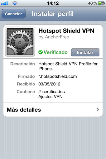 HotSpot Shield VPN es una aplicación para iPhone que permite navegar por internet de una forma anónima y segura utilizando una VPN (Virtual Private Network). Con tan solo un clic podemos conectarnos a una red privada virtual con el objetivo de preservar nuestra identidad en internet, navegar de una forma más segura y protegernos de las múltiples y constantes amenazas que existen en la red.